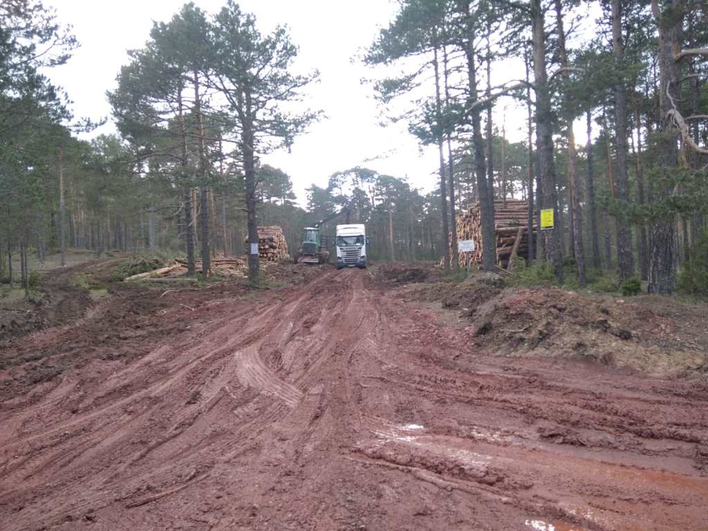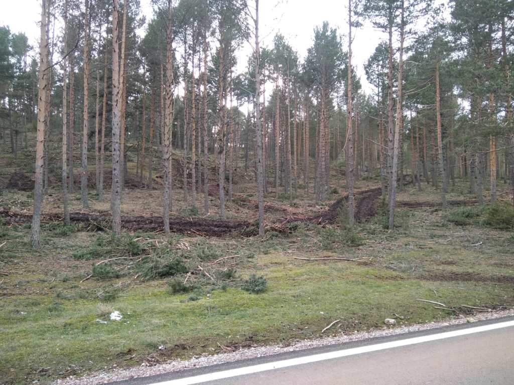¿Y qué está pasando allí? Sencillamente una reedición de la actuación en la Vega del Tajo. Han empezado en noviembre, pero las máquinas llevan buena marcha. Ya han arrasado varias hectáreas con el mismo sistema. Aquí, en cambio, la madera apenas se apila. De la procesadora al camión. Rápido.